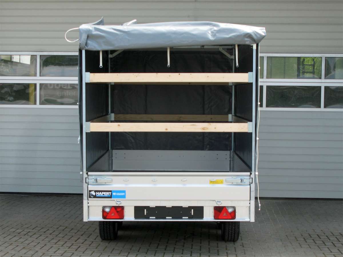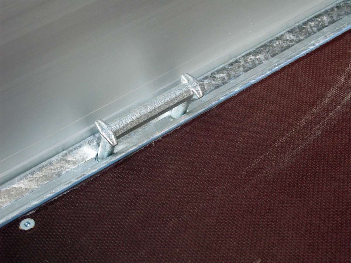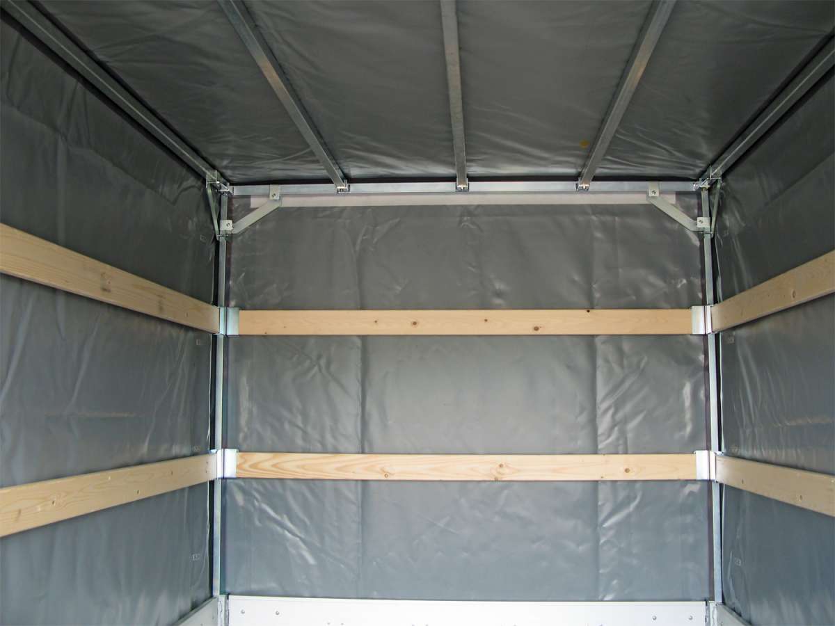 - Construction en bâche haut de gamme, hauteur intérieure de 2000 mm, coloris 7024, toile tissée de haute qualité de 680 g/m². Renforcée aux angles, tous les côtés sont ouvrables, 2 barres transversales sur tout le pourtour.