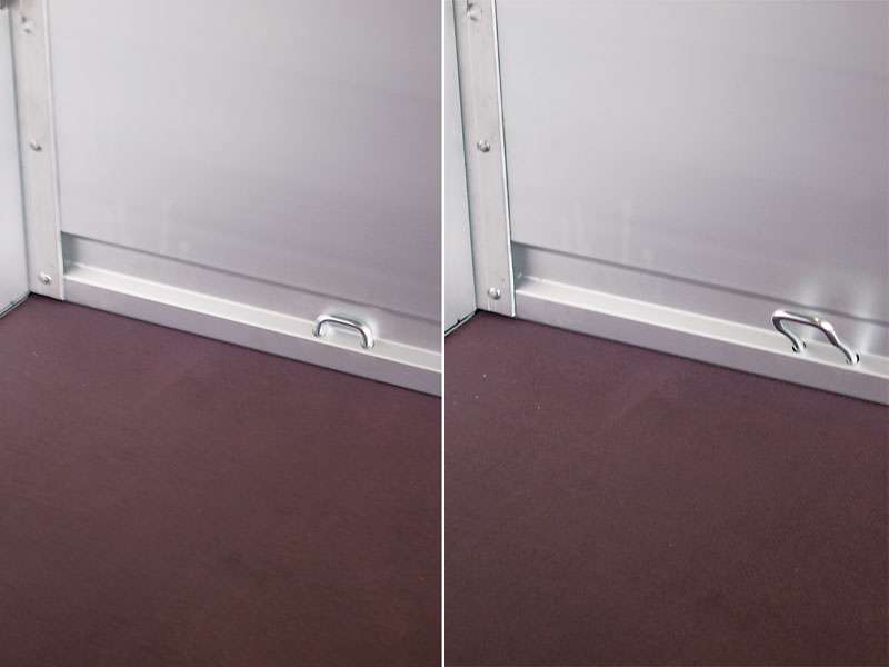 - Anneaux d’arrimage encastrés pour la fixation du chargement dans les parois latérales (jusqu’à 2050 mm de longueur de boîte, 4 pièces ; à partir de 2510 mm de longueur de boîte, 6 pièces).