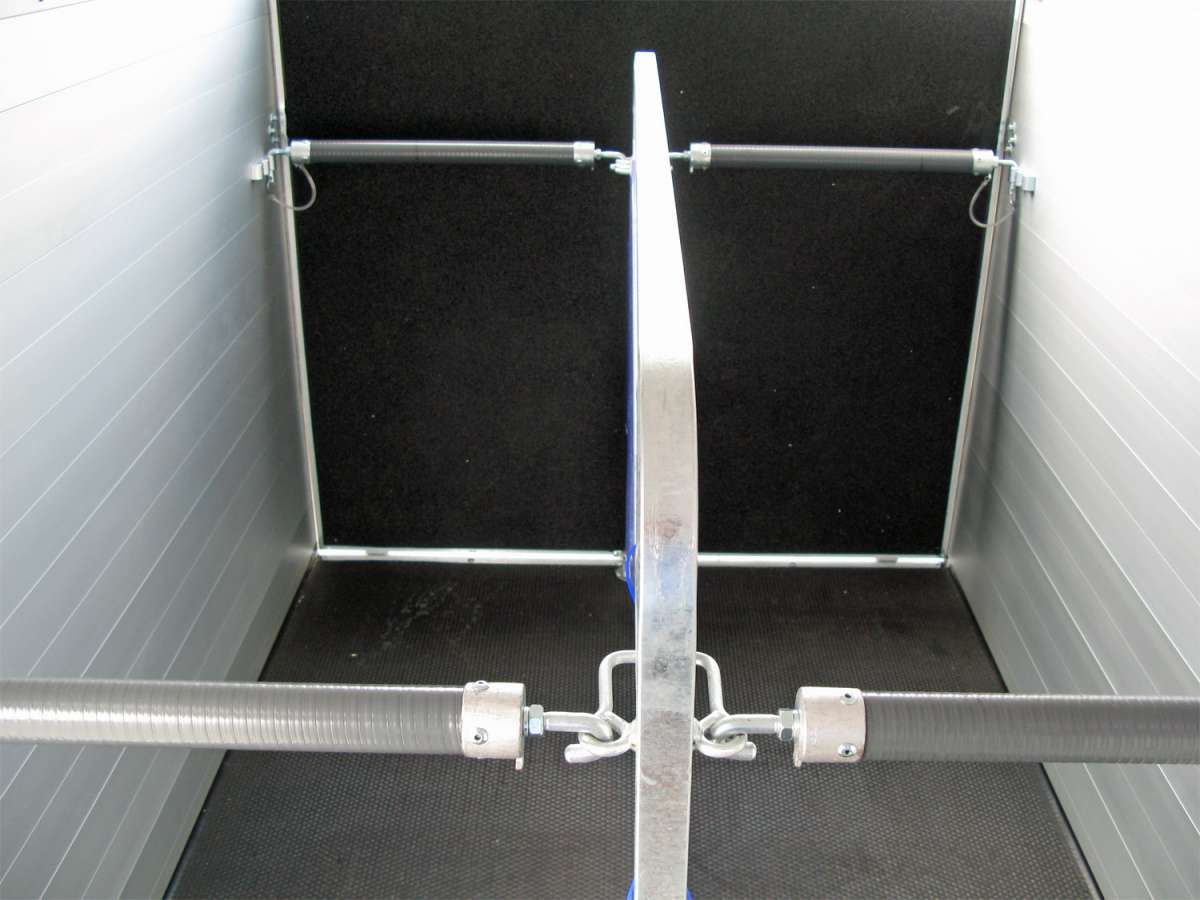 Les chevaux bénéficient de barres de poitrail et de barre arrière séparées avec système de déverrouillage d’urgence, de fenêtres teintées ouvrantes dans le toit en polyéthylène et d’un déflecteur d’air assurant une ventilation optimale. La cloison verrouillable EquiLock® est facile à utiliser et garantit une fermeture sécurisée, même lorsque le hayon est ouvert.