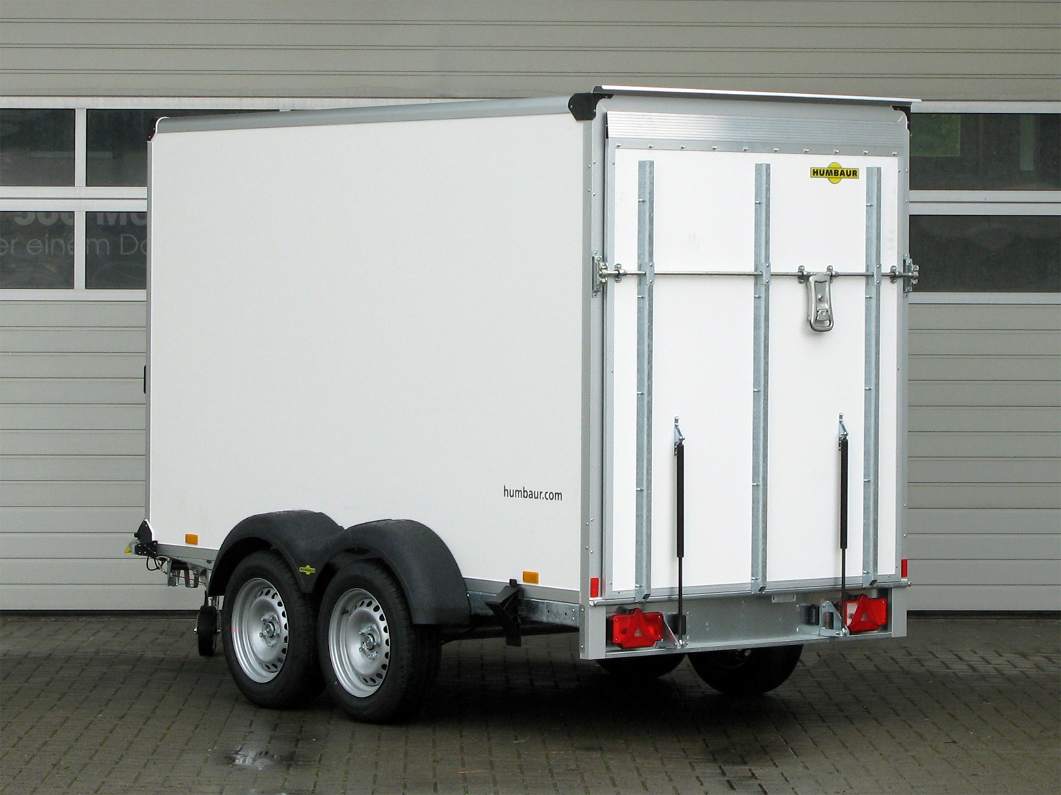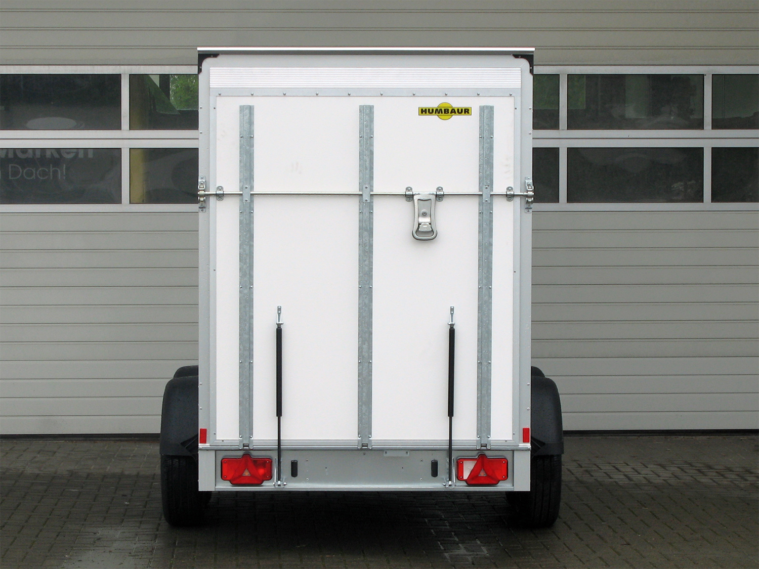 Un éclairage intérieur assure une visibilité optimale. Toutes les semi-remorques sont équipées de charnières et d’un verrou rotatif en acier galvanisé. Des joints d’étanchéité en plastique garantissent l’étanchéité des portes pendant le transport. Des renforts en aluminium au niveau du toit et de la paroi avant inférieure confèrent aux semi-remorques Humbaur une stabilité exceptionnelle.