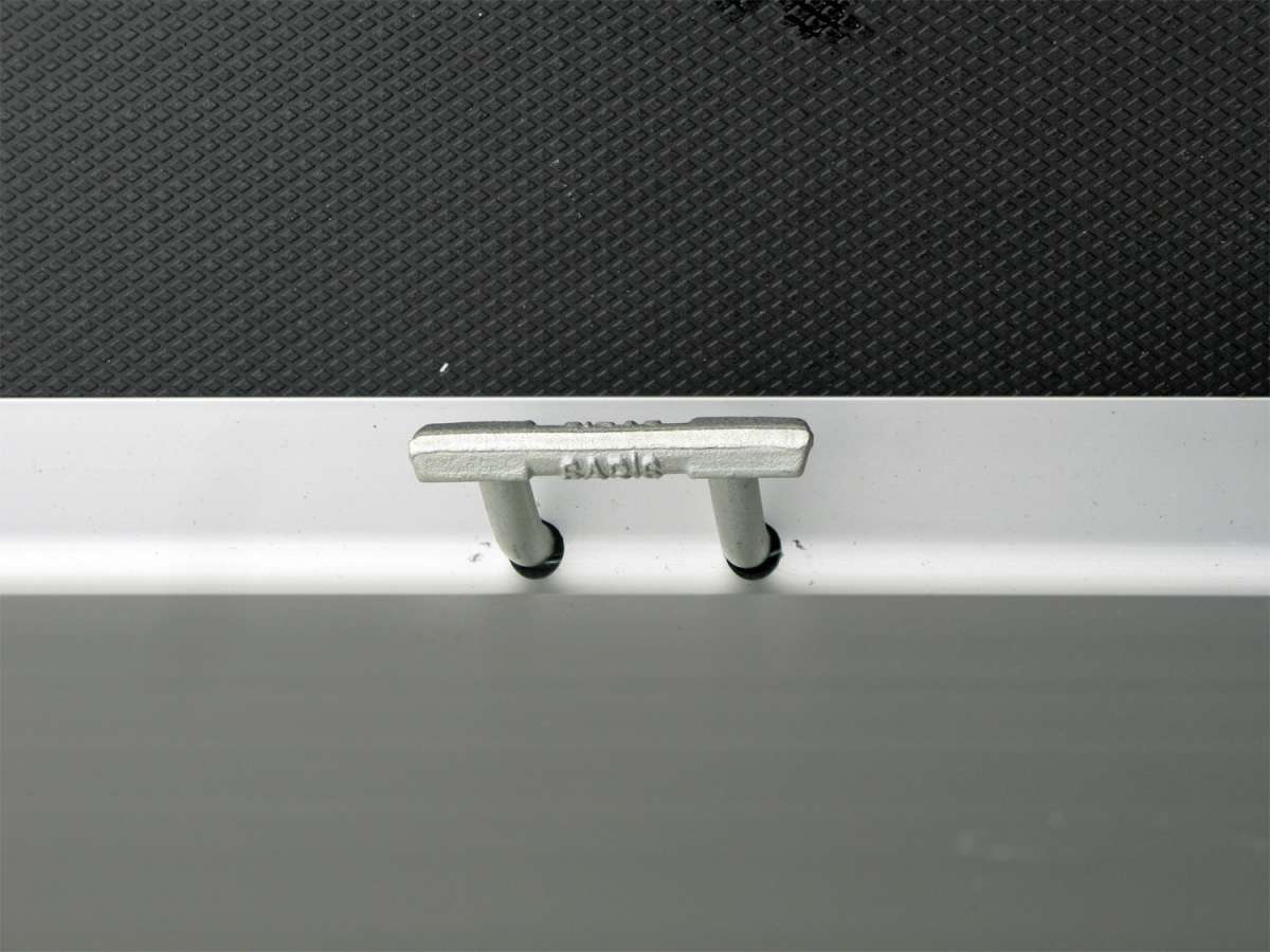 - Couvercle en aluminium s’ouvrant vers l’arrière, avec plaque en PRV durable.