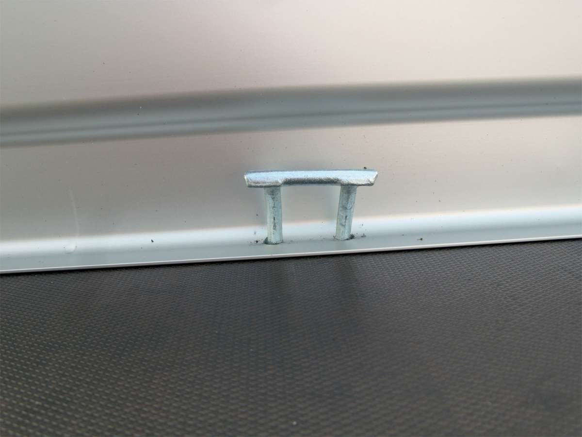 - Les crochets d’arrimage optionnels peuvent être facilement repositionnés dans le profil du panneau latéral.