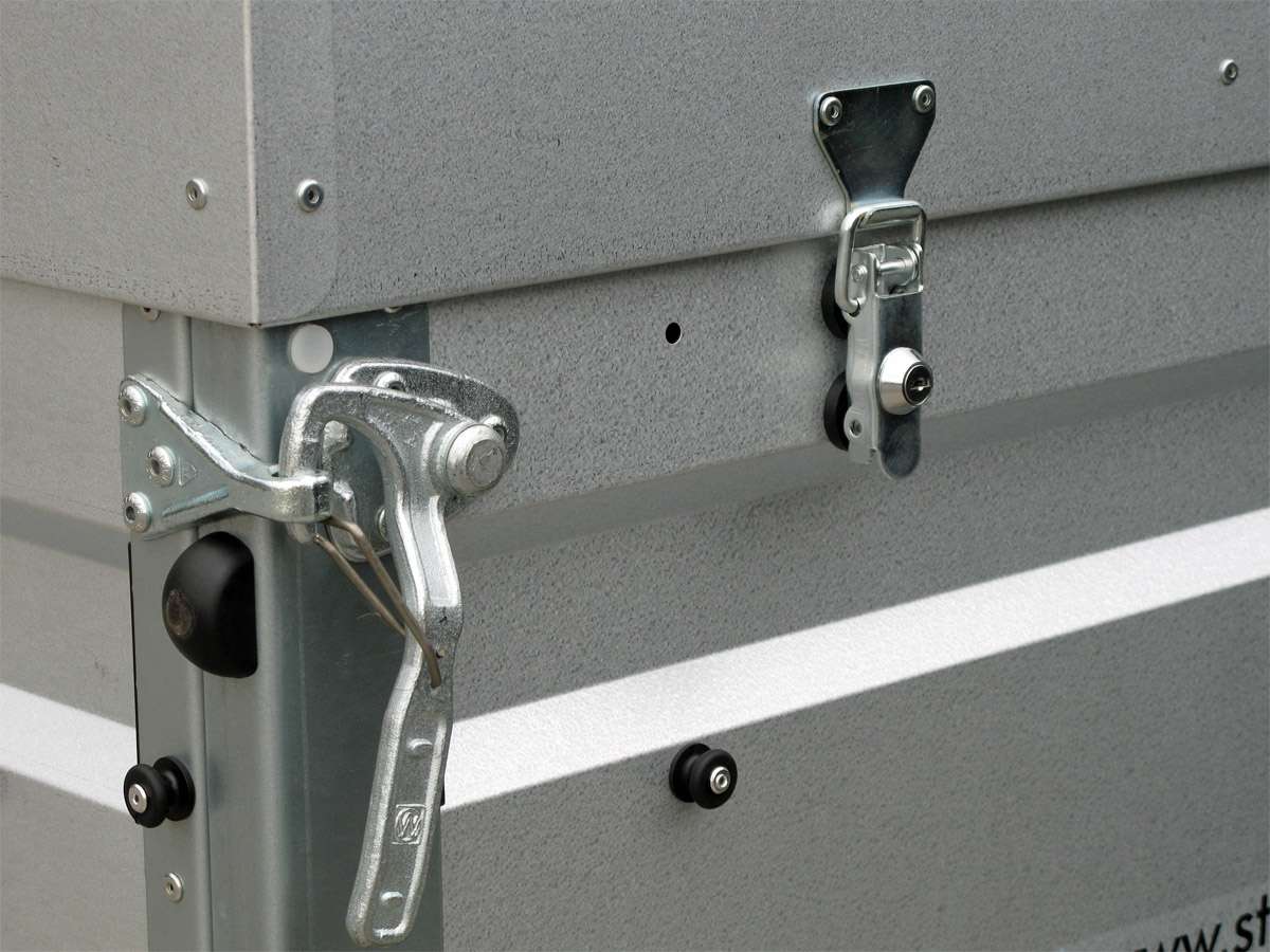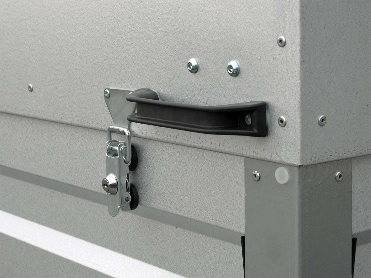 - Verrous à levier d’angle robustes en acier moulé (selon le modèle)