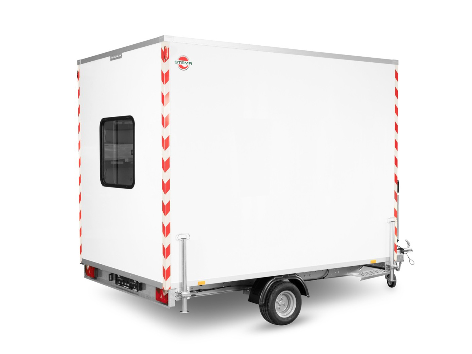 Découvrez la remorque de chantier STEMA – votre salle de pause mobile pour un travail d’équipe efficace sur le chantier ! Avec ses dimensions généreuses de 307 x 201 x 230 cm, cette remorque offre un espace confortable pour le matériel et des pauses détente. La porte avant avec marchepied intégré au timon facilite l’accès, tandis que la fenêtre arrière assure une bonne ventilation. Grâce à son système d’arrimage innovant, vous pouvez personnaliser la remorque et l’équiper de trois packs différents. Salle de réunion, espace détente ou salon – la remorque de chantier STEMA vous offre la flexibilité nécessaire pour organiser efficacement votre travail quotidien sur le chantier. Investissez dans la fonctionnalité et le travail d’équipe – investissez dans la remorque de chantier STEMA ! (Image incluant les accessoires optionnels.)