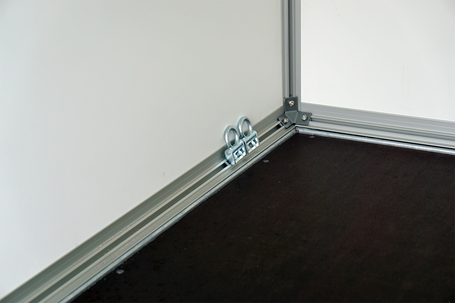 - 4 anneaux d’arrimage intégrés au profilé en aluminium (réglables)