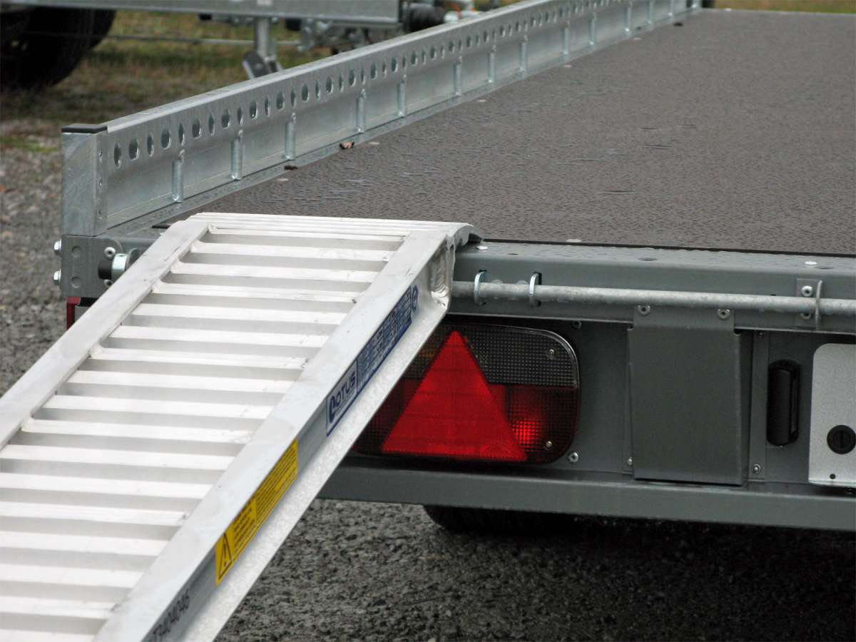 - Des rampes de chargement légères en aluminium, astucieusement rangées sous la plateforme de chargement, facilitent le chargement et le déchargement.