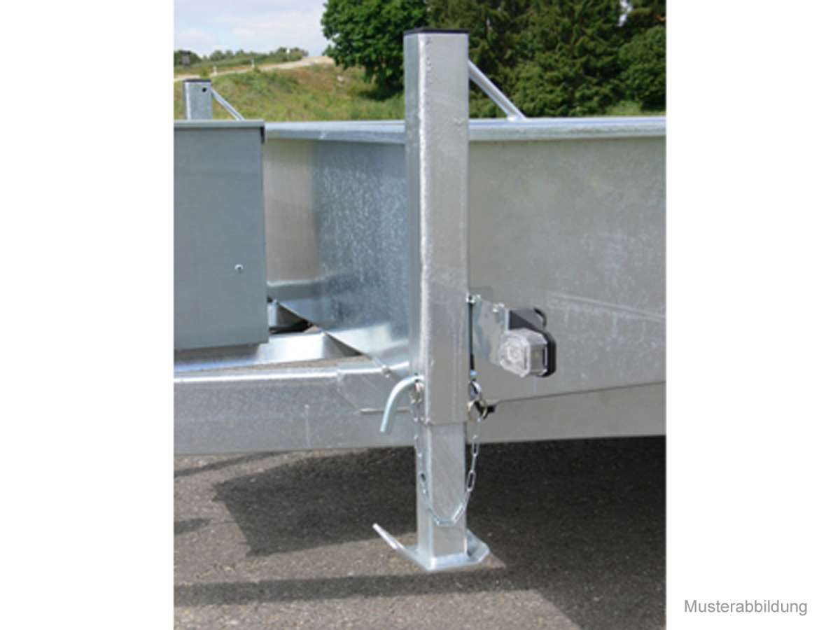 - Roue de support automatique renforcée montée sur une traverse séparée avec une capacité de charge de 500 kg pour un stationnement sûr de la remorque.