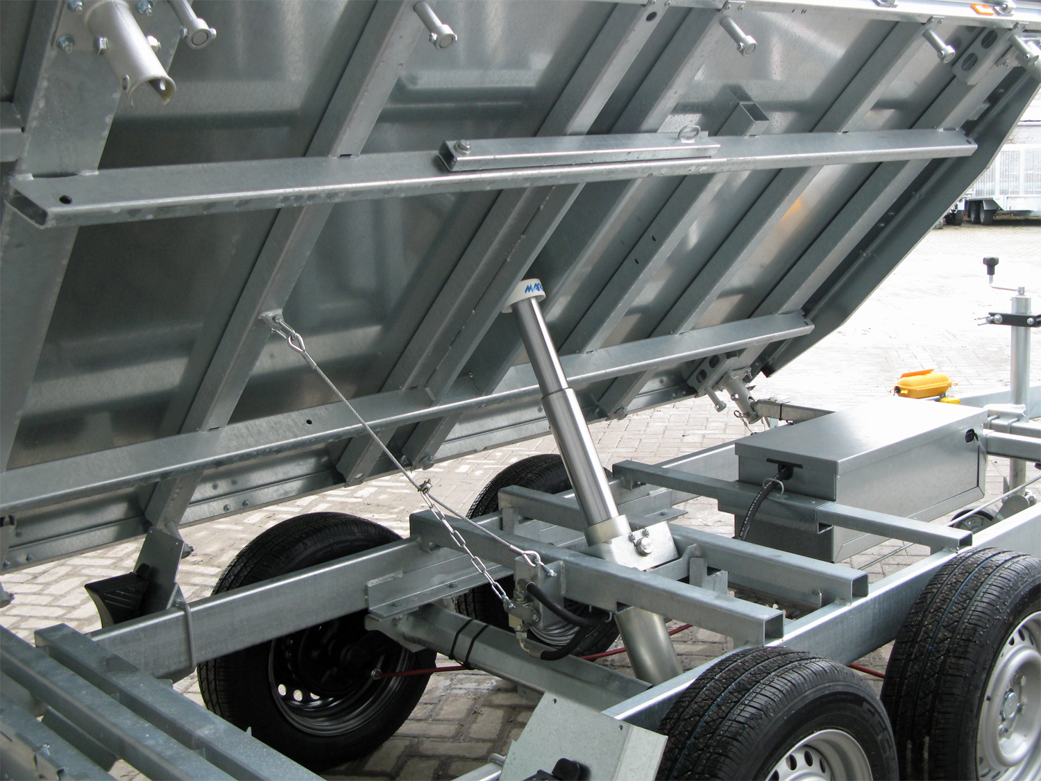 Plancher en acier plié en une seule pièce au-dessus de la zone de chargement. Électricité/hydraulique :