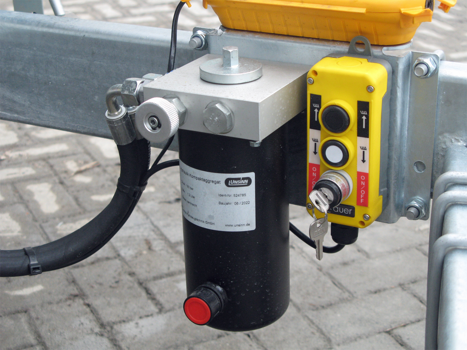Hydraulique : système hydraulique électrique avec batterie et chargeur, pompe de secours (sans pompe) pour visseuses sans fil, support de plaque d’immatriculation pliable pour le rangement des rampes de chargement sous le plan de travail.