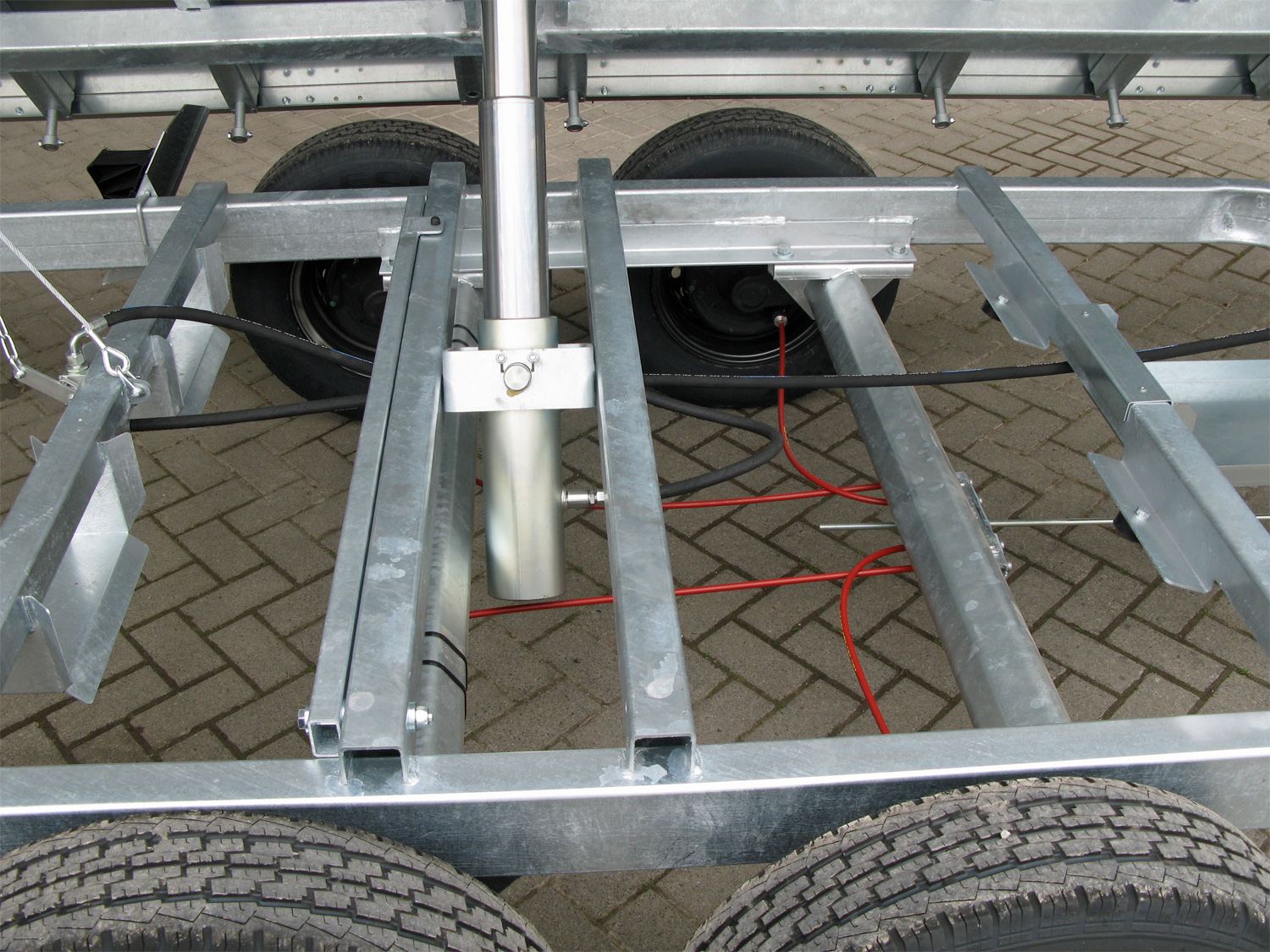 - Rampe d’accès avec dispositif de tension sous le plateau de chargement, incluant un support de plaque d’immatriculation pliable