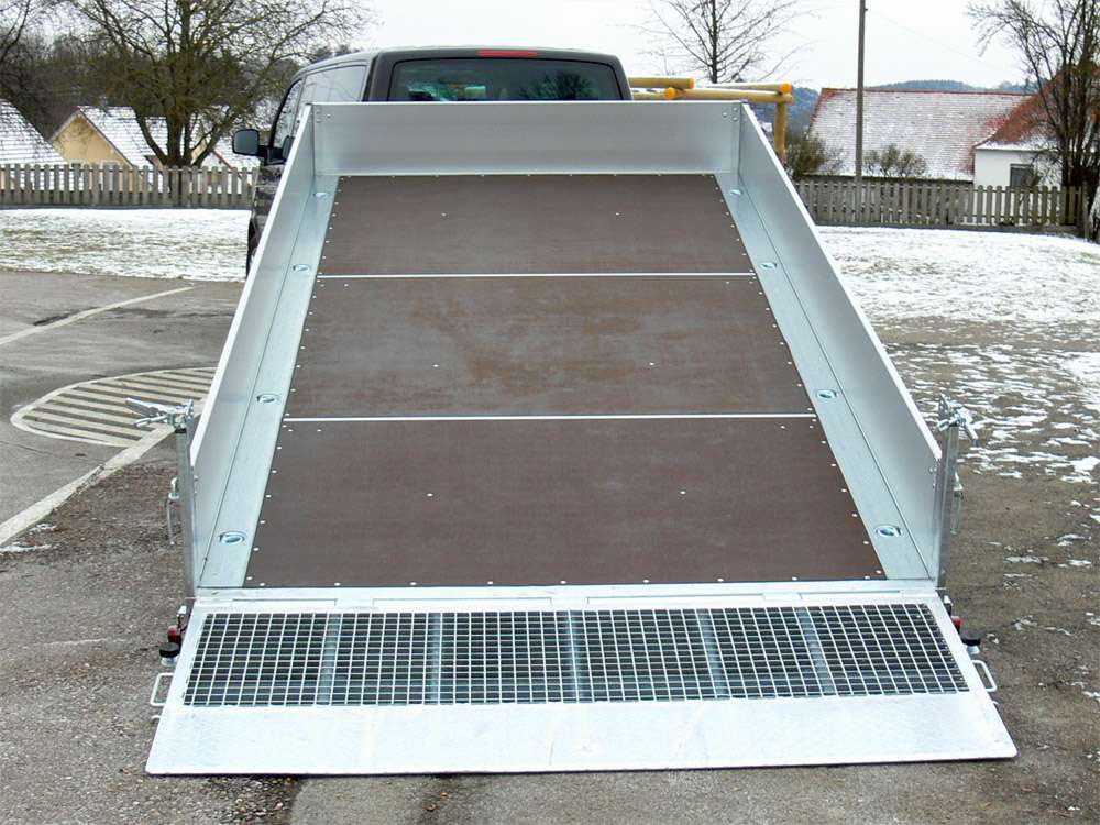 - Rampe de chargement en treillis d’acier sur toute la largeur, hauteur 850 mm, avec assistance au levage par vérin à gaz, résistance au vent minimale