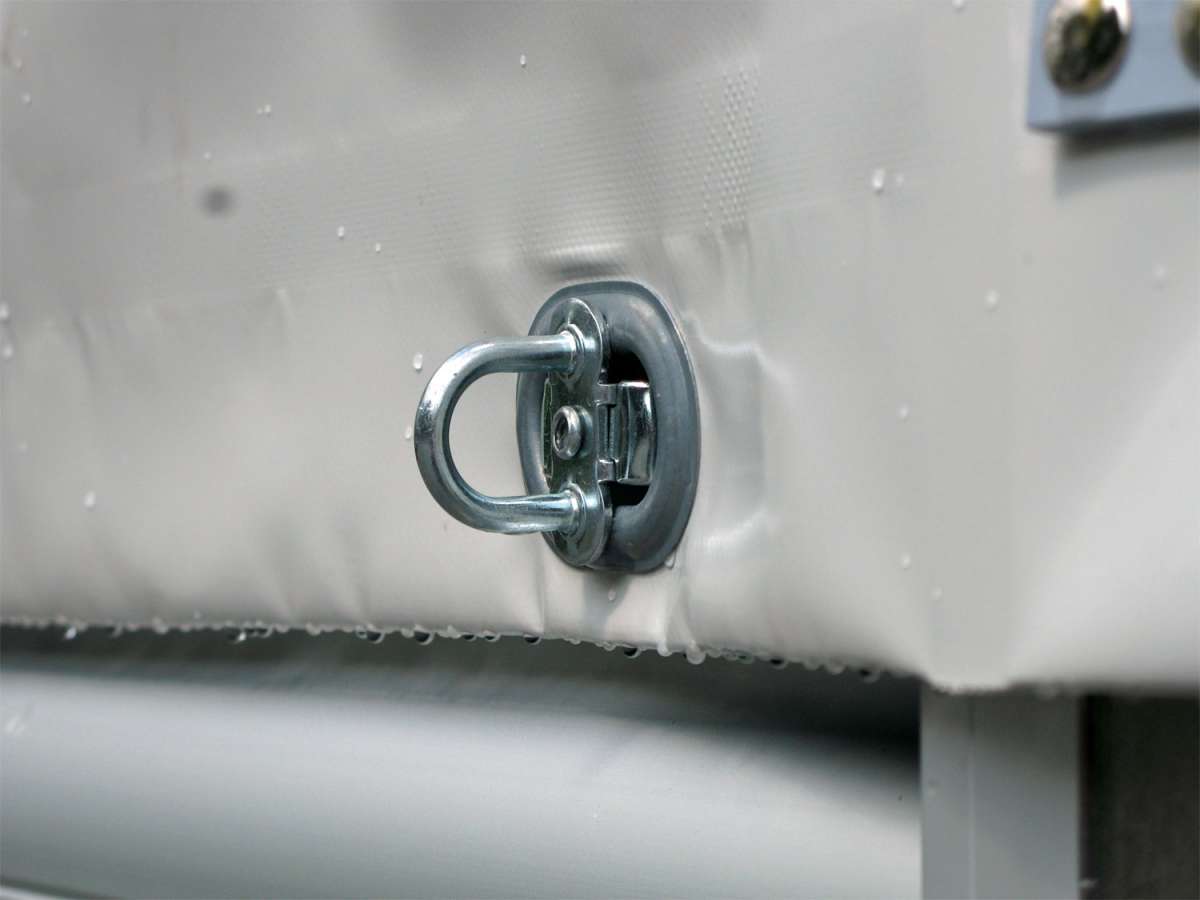 - 4 anneaux d’arrimage pliables, encastrés dans le profil du cadre de base