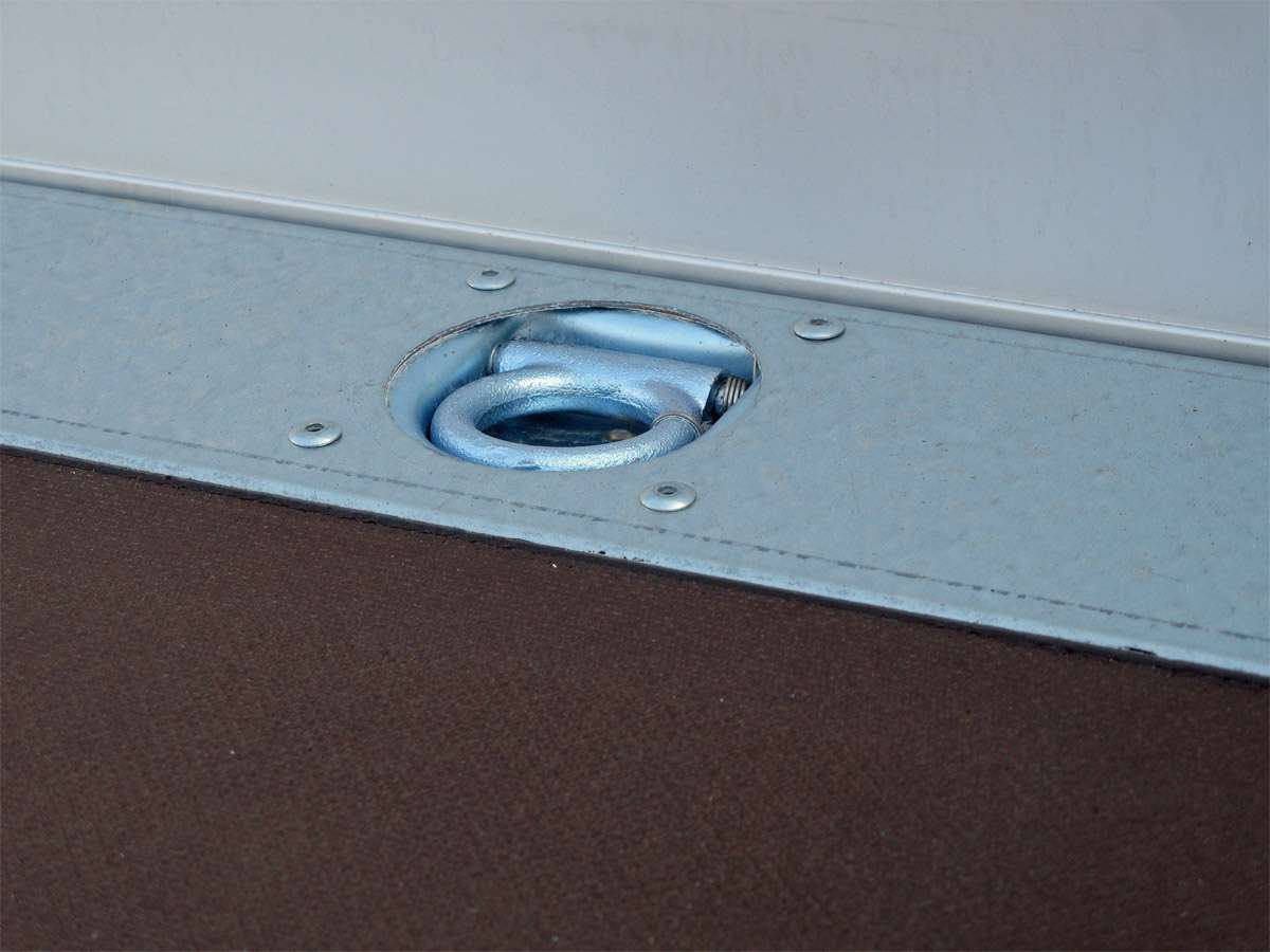 - 8 anneaux d’arrimage pliables, encastrés dans le profil du cadre de base