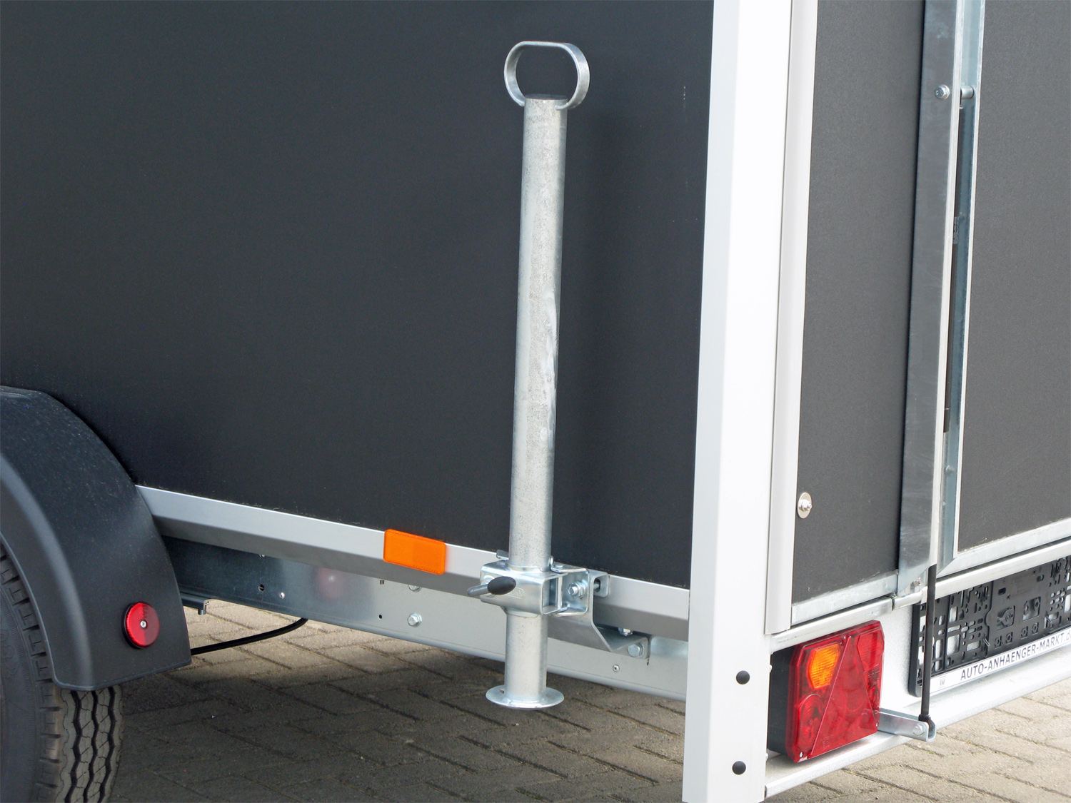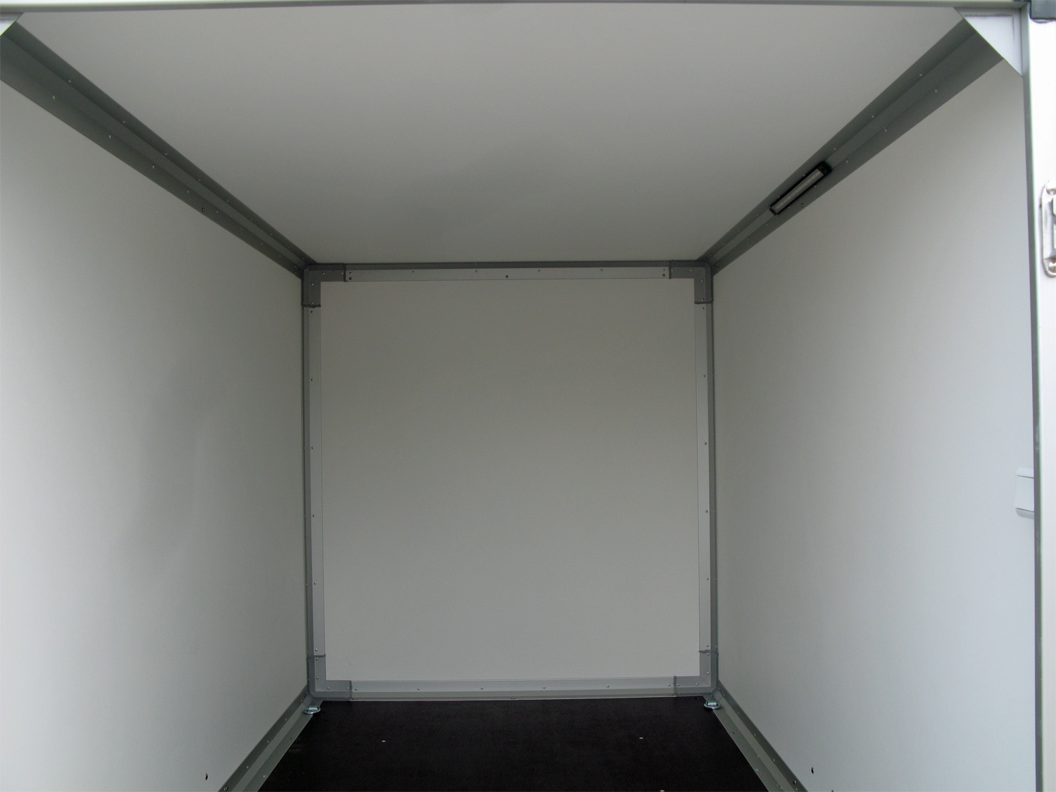 La remorque est équipée de deux portes arrière verrouillables, offrant un accès facile et sécurisé à son vaste espace de chargement. L’éclairage intérieur (LED 12 volts) et les six anneaux d’arrimage facilitent le chargement et l’arrimage, même par faible luminosité. Pour une plus grande flexibilité, une rampe arrière peut être ajoutée en option, simplifiant le chargement d’objets lourds ou roulants. Des rails d’arrimage supplémentaires sont également disponibles pour optimiser l’arrimage du chargement pendant le transport.