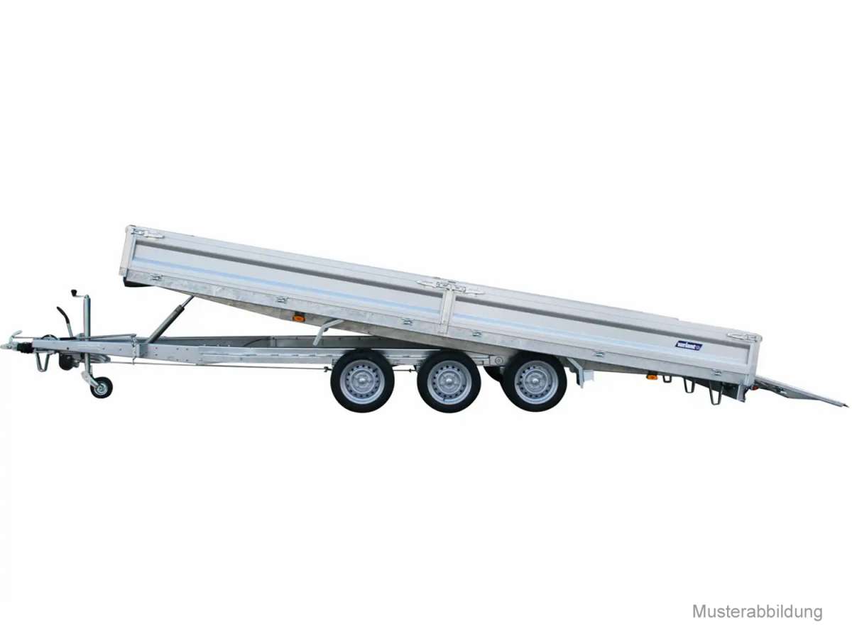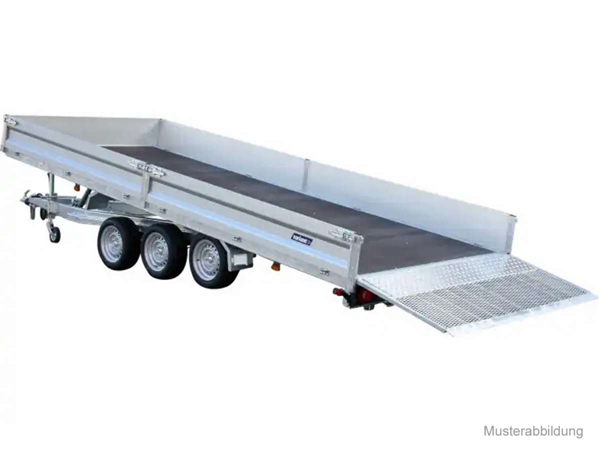 est un modèle fonctionnel de la gamme Universal, conçu pour les applications exigeantes dans les secteurs de la construction, des travaux publics et du transport. Grâce à sa large surface de chargement et ses trois essieux, elle est idéale pour les professionnels ayant des exigences élevées en matière de charge utile et de fiabilité.